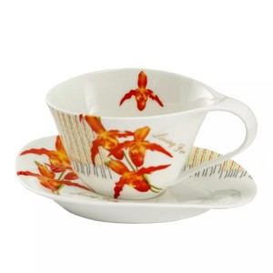 Filiżanka ze spodkiem - pomarańczowe kwiaty