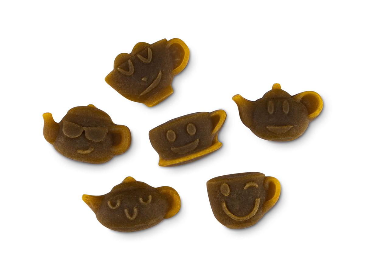 MATCHA LEMON MAGIC to żelki herbaciane w kształcie czajniczków i filiżanek z zabawnymi uśmiechniętymi twarzami. Łączą słodką przekąskę z funkcją błyskawicznego napoju – po zalaniu gorącą wodą szybko się rozpuszczają, tworząc aromatyczny napój matcha z orzeźwiającą nutą cytryny.