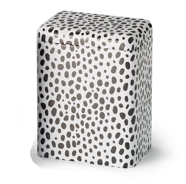 Opis: Zaokrąglona puszka przeznaczona do przechowywania 200 g herbaty lub kawy. Ma na celu zachowanie świeżości suszu. Ponieważ herbata jest higroskopijna i bardzo łatwo wchłania wszelkie zapachy, bardzo ważne jest odpowiednie jej przechowywanie. Puszka zabezpiecza przed zwietrzeniem (utratą aromatu) i zawilgotnieniem herbaty, a co za tym idzie pogorszeniem walorów smakowych.
