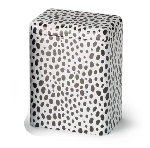 Wzór: Biała puszka błyszcząca w czarne cętki.