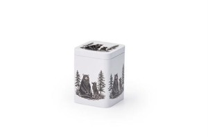 Metalowa puszka z przykrywką w kolorze białym z nadrukiem w stylu linorytu w kolorze czarnym Puszka jest lekka i wytrzymała, przeznaczona do przechowywania herbaty, kawy, śłodyczy. Puszka ma na celu zachowanie świeżości produktów. Puszka zabezpiecza przed zwietrzeniem (utratą aromatu) i zawilgotnieniem produktu, a co za tym idzie pogorszeniem walorów smakowych.