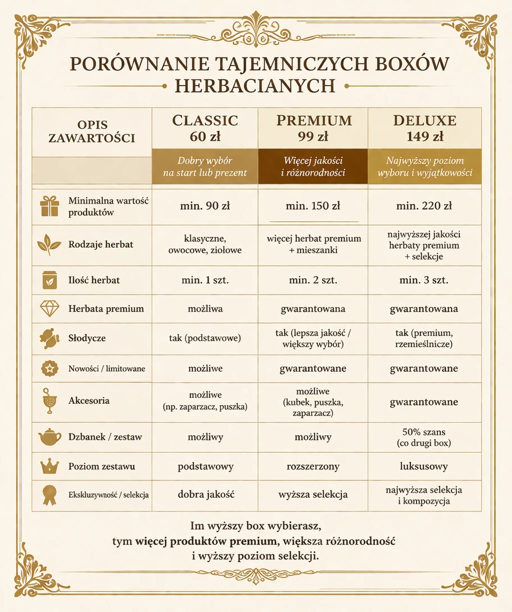 Jeśli lubisz odkrywać nowe smaki i niespodzianki w świecie herbaty, TAJEMNICZY BOX jest właśnie dla Ciebie.